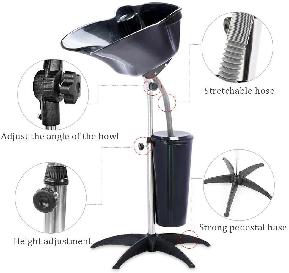 - [High-quality Materials] This hair stylist shampoo bowl is made of durable ABS composite and stainless steel support pipe, strong pedestal base with chrome-metal riser, lightweight and portable.