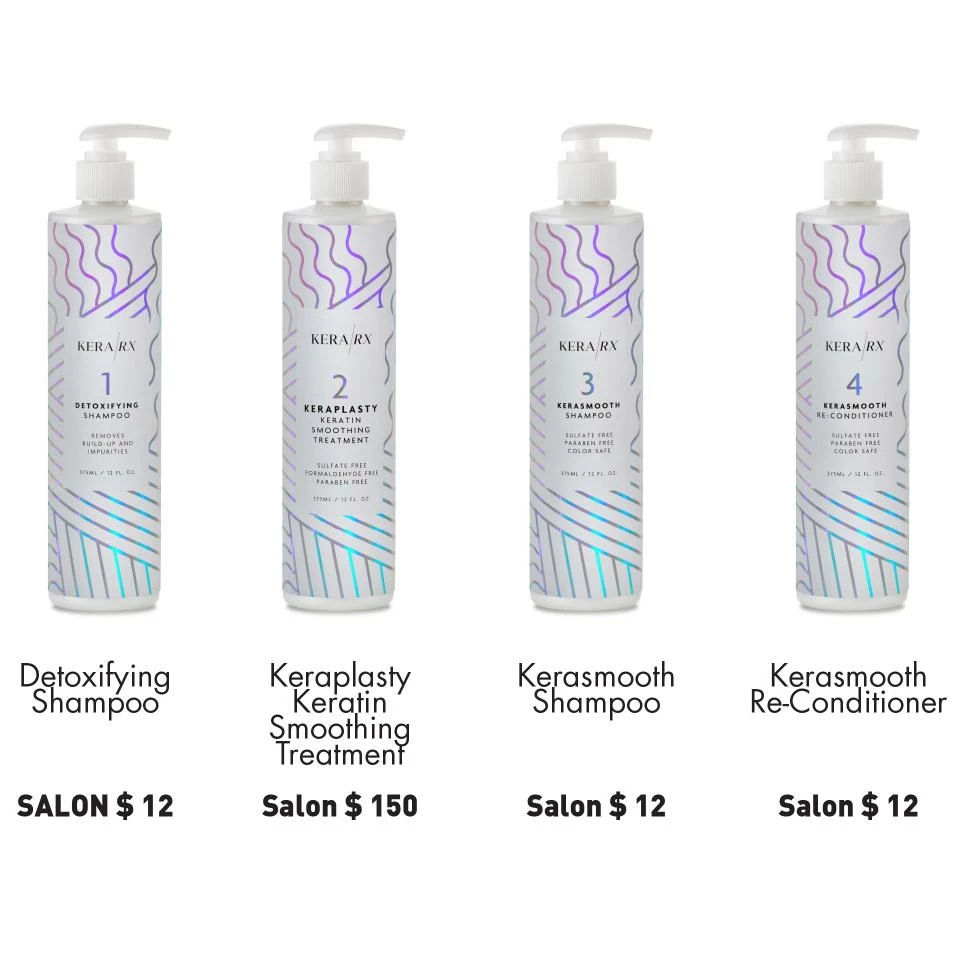 Utilizes our newest color-safe protective system, specially formulated to extend the life of your color and/or keratin treatment by depositing hydrolyzed nano-keratin, Omega-3โs, antioxidants, strengthening vitamins and botanicals, as well as soy, whole wheat, oat, and quinoa proteins into the hair shaft in order to repair damage, smooth the cuticle, protect the hair from heat/UV rays, and to optimize the longevity of the KeraRX Smoothing Treatment .