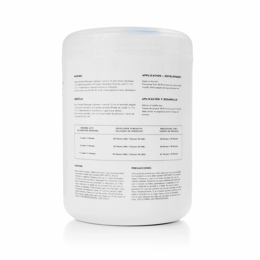 - Up to 7+ levels of lift • Weigh Starlight Balayage Lightener and Mix 1:2 with chosen Developer