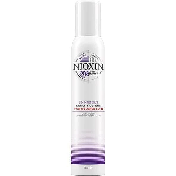 Nioxin Density Defend is a lightweight leave-in strengthening foam for colored hair. DensiProtect Technology provides up to 93% reduction in hair breakage and improves the vibrancy of hair color.*