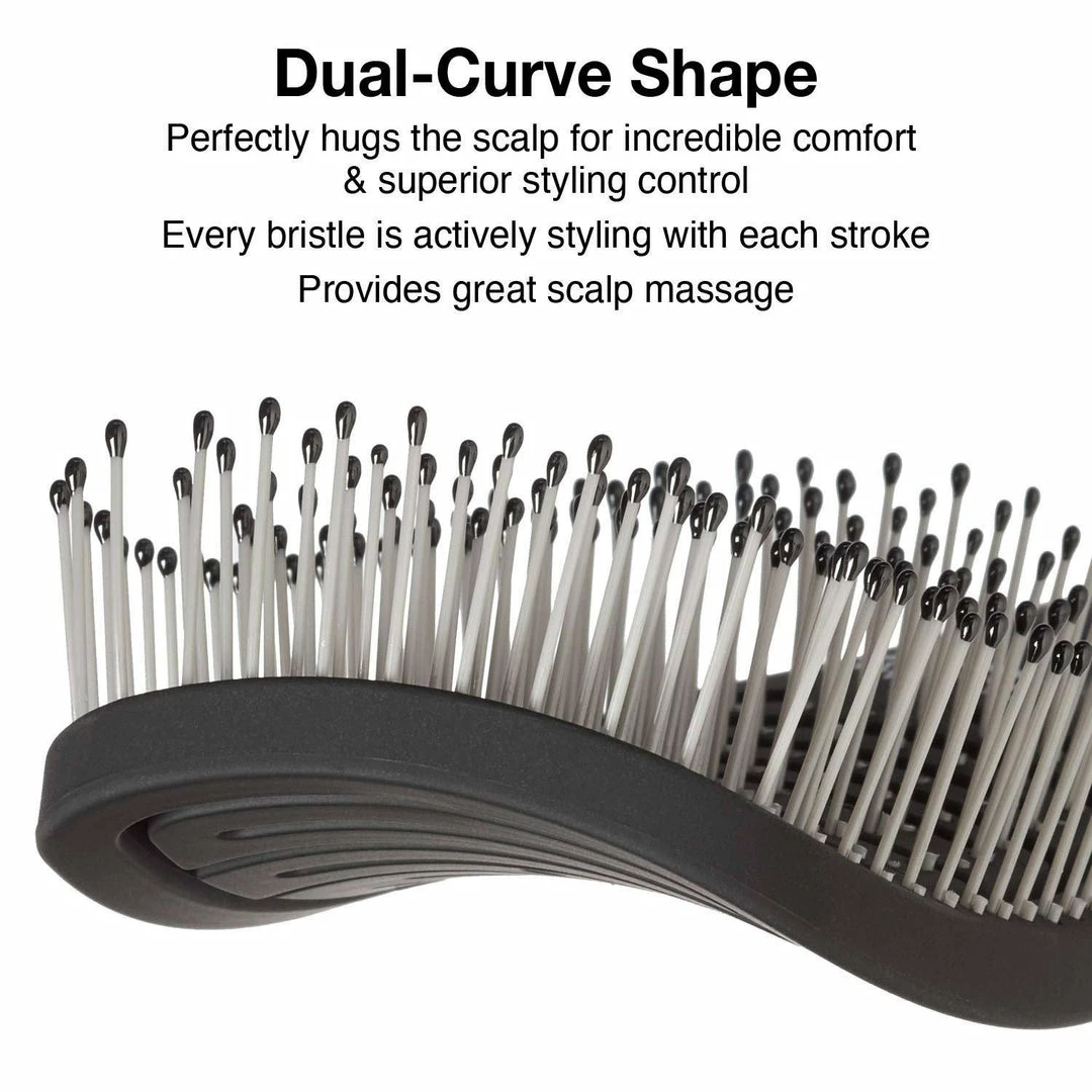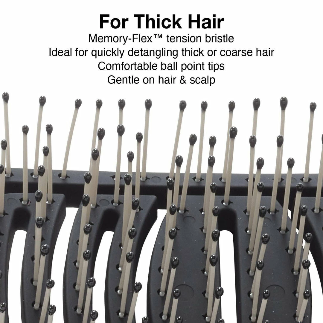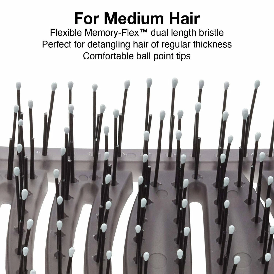The patentend dual-curve shape hugs the scalp with comfort & superior results for detangling. It detangles perfectly medium hair thickness while giving you an amazing scalp massage.