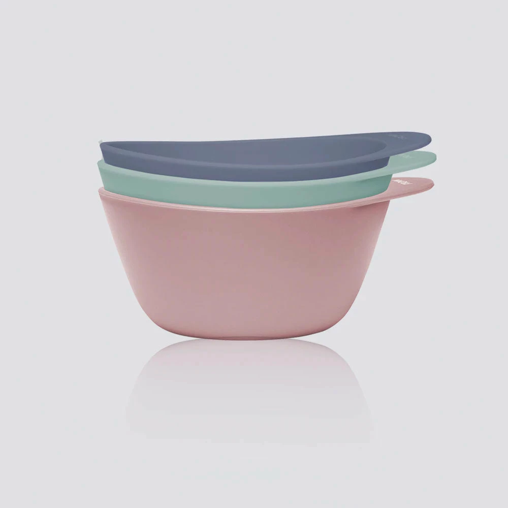 Set of 3 small size mixing bowls for multi color mixing with a stainproof matte finish.